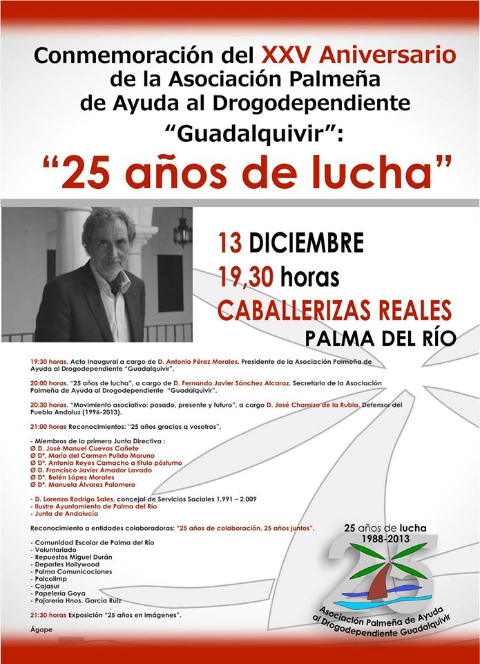 A finales de la década de los años 80 en la localidad de Palma del Río y ante la problemática de las drogodependencias, un grupo de familiares y amigos de personas con problemas de drogodependencias decidimos constituirnos como entidad y fundamos la Entidad Asociación Palmeña de Ayuda al Drogodependiente «Guadalquivir» .